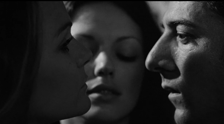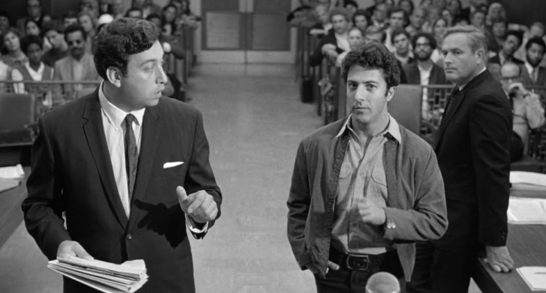 Lenny es el único film no musical de Bob Fosse, si bien trata del mundo del espectáculo. Con mucha fuerza visual, un montaje psicotrópico del que luego hablaré y un naturalismo muy de los 70 nos cuenta el éxito y los pesares del cómico Lenny Bruce, cuya interesante figura ahora no voy a glosar. Tampoco quiero hablar de la gran actualidad del discurso de este corrosivo humorista en contra de la hipocresía y la moralina aceptada socialmente en su época y en todas, ni de los problemas legales que padeció y que han quedado como emblema vergonzoso de la persecución que las instituciones llevan a cabo sobre quienes desean hacer uso inteligente -o no- de su libertad de expresión. Todo esto que digo es realmente lo interesante de la película y de la historia que cuenta, pero otros ya lo habrán explicado mejor que yo, y la película lo deja todo clarísimo, así que prefiero entretenerme en el análisis de su puesta en escena.
