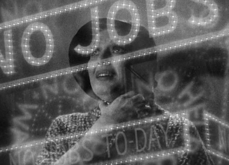 La vertiente social de Midnight Mary está presente aunque atenuada y no incluye reivindicación alguna con tufillo izquierdista -esto es la Metro, no la Warner-, pero la situación económica del momento queda claramente reflejada en el “paseo nocturno” que tan icónico se ha vuelto en el que los neones que anuncian fiestas y productos se convierten en la alucinada imaginación de una hambrienta Mary en mensajes de no hay trabajo. Otro hallazgo es cuando de nuevo se ve forzada a buscar empleo y en vez de a ella vemos a sus piernas, con las medias llenas de carreras, recorriendo infatigable las calles en busca de sustento. Esto es un toque muy wellmaniano: sustituir a las personas por objetos que las representan, y es de uno de los momentos que salvan a Midnight Mary y la alejan de la mediocridad. Y es que la imposibilidad de encontrar un empleo decente es uno de los más importantes resortes de la acción, y la sociedad que refleja la película carece por completo de clase media. Esa radical desigualdad social, que el filme certifica sin pretenderlo, está en esta película mucho más acentuada que en otras de este tiempo realizadas también por Wellman y protagonizadas por Barbara Stanwick, como Enfermeras de media noche.