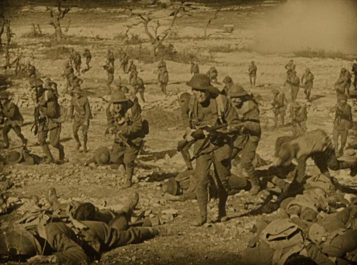 Destaquemos, por ejemplo, la famosa escena que sirve de descanso y bisagra entre los dos bloques bélicos, el “descanso del guerrero” en el Folies Bergerès de París. Wellman pone toda la carne en el asador para que no sea un mero trámite melodramático, sino una singladura llena de arte visual y significación dramática. Es la parte que abre el célebre travelling y que se sostiene en la metáfora de las burbujas. En efecto, las burbujas del champán, que llenan cada plano con simpáticos trucajes, no son solo un efecto visual, sino un elemento significativo, evocador de una realidad -la del tiempo de paz y felicidad- frágil e inasible de la que la Gran Guerra parece haber desterrado al mundo entero.