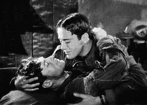Aparte del ardor patriótico, en mi opinión algo tan obvio como secundario, el tema central de la película, y de buena parte del cine de Wellman y, si me apuran, de lo mejor del cine de todos estos grandes directores que surcaron el mudo, el Hollywood clásico y la llegada de la televisión pasando por muchos géneros, es la amistad. El compromiso personal que mantienen por amistad y camaradería Jack y Dave es -ellos mismos lo declaran explícitamente- muy superior al que se debe a una mujer o a la patria. Su amistad se pondrá a prueba en varias ocasiones y deberá sufrir la más insoportable de las tragedias, que me guardo para no destripar. En el cine de Wellman, como pasa en Hawks o Ford, el compromiso que mantienen entre sí dos amigos es un nexo inastillable, telúrico. El amor romántico puede ir y venir, el tiempo y la oportunidad pueden trastocarlo y la vida sigue su curso, pero entre compañeros de armas o de patrulla o de rebaño el compromiso es sagrado, y si termina acaba con él la historia que estaba mereciendo ser contada. Wings nos deja, como prueba de esto que cuento, con la famosa escena en que los dos amigos se besan entre el amor y la muerte. Es un plano, el de este beso, que visto hoy parece cuando menos exótico y peculiar. Nos resulta extraño porque nos remite a una soterrada relación homosexual que no pienso yo que estuviera en el mente ni la intención de nadie insinuar. Leo por ahí en varios sitios que es el primer beso entre dos hombres de la historia del cine. Sin tener ahora en la mano otros títulos que poner aquí como prueba de lo contrario creo que puedo discrepar tranquilo de esa opinión. En este tiempo todos los besos eran en los labios o alrededores.