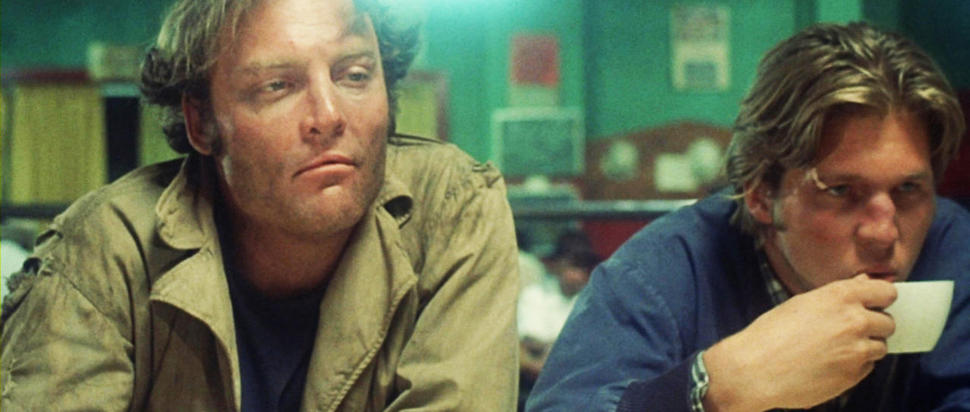 Huston sin embargo ha escogido para llegar al mismo sitio un camino totalmente opuesto. Aparte de las obvias diferencias formales que determinan el tiempo transcurrido entre ambas películas y sus procesos de producción y fotografiado, Fat City es muy distinta. El tiempo no solo no se corresponde con el paso real de los minutos, sino que hay elipsis tremendas que, si nos despistamos, pueden desubicarnos. Entres dos planos pueden haber pasado seis meses, o un año, sin que nada en la transición visual entre ambos lo indique. El tiempo pasa por sus protagonistas sin que merezca la pena enfatizar nada. En esta película todos los personajes son un poco insulares. Son ellos con sus problemas y, cuando hablan con otros, realmente no hacen más que dictar un soliloquio sobre ellos mismos. Nadie parece escuchar a los demás, ni siquiera a sí mismo, por lo que el paso del tiempo, o lo que suceda a cualquiera de ellos, es indiferente a los demás, que siguen con su hilo biográfico y su propia línea temporal. En cierto sentido es una película muy abstracta. Abstracta como el mundo que se atisba al otro lado de la resaca. Fogonazos de personas, espacios y rutinas. Vista así la realidad, cualquier sitio es bueno para volver a empezar… Y eso mismo pensaría Stoker, en duro blanco y negro, veintitantos años antes.