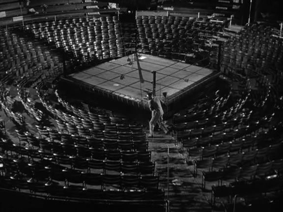 Sin embargo, ambas películas escogen caminos muy distintos para llegar a este mismo lugar. The Set-Up es un filme brillante y trabajado, una gema humilde pero tallada con la maquinaria más precisa y con el diseño más eficiente. Es una película de ese género que yo llamo “patada en la barriga” que preside Incidente en Ox-Bow. Película corta pero meticulosamente pensada y ejecutada, de forma que uno tiene la sensación de que ha surgido de la tierra para eso, para patearnos la barriga y volverse luego a sepultar. Además su narración en tiempo real contribuye, con sus ansias y sus oportunidades de demora, a que naturalicemos la tensión y la empatía que, a partes iguales, sentimos por el bueno de Stoker y el destino que le aguarda dentro del cuadrilátero, y luego fuera.