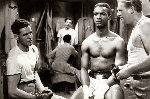 Pero antes de dejar a Stoker tranquilo hay que hacer mención de la escena de su pelea. Dura en tiempo real, como he dicho, los 4 asaltos programados con sus descansos. Eso son 21 minutazos de metraje y es, simplemente, irrepetible. La siempre atenta censura, por cierto, quizá colaborara en esta ocasión a su mérito, pues la oficina de la PCA ordenó, visto el guión, que se tomaran muchas tomas generales para cubrir un posible exceso de sanguinolentos planos medios y cercanos en el montaje final. Y en efecto es una pelea en la que hay pocas imágenes en primer término de los púgiles. Casi todo el tiempo los vemos con las cuerdas de por medio, como espectadores. Sin embargo está todo tan bien coreografiado y montado que el resultado es estremecedor. Diré que mis acompañantes en casa pasaron un mal rato, porque si uno es sensible a la violencia -no como yo, un cacho carne- es comprensible que tal letanía de golpes sin sentido -¡se juegan 50 dólares!- dejen mal cuerpo. Es una película dura, intensa, fulgurante y sin moraleja. Irrepetible.