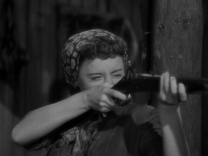 Tengo la impresión de que el código Hays tiene casi toda la culpa de lo insípida que a ratos parece esta peli. Por su causa no se puede explicitar el amor que Hanna debe sentir por su protector Steely (Donlevy) y el tema de la bigamía de Hoyt es tan delicado que se ha optado por evitar cualquier tensión moral. En este aspecto la verdad es que Wellman o sus guionistas han pecado de ramplones, pues ni siquiera han apostado por la insinuación. Hay algunos momentos de los que no sabe uno qué pensar, como el de la muerte de Hoyt cuando le pide a Hannah un beso y al agacharse ella para dárselo ¡se muere sin llegar a recibirlo! y además sin que podamos verlo. Recordemos que el código no consentía besos entre no casados en horizontal, e incluso entre casados con cuidado. Esto me recuerda algo curioso: varias escenas dramáticas en las que Wellman -son esas migajas de arte y ensayo que le gustaba dejar- mantiene a los actores en sombra, como para disculpar a los personajes por los turbios sentimientos que los mueven en ese momento.
