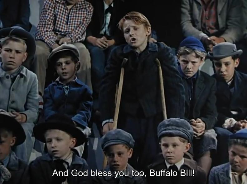 De ese mismo Buffalo Bill, pero del real, Wellman también afirma que es el mayor falsario que haya existido nunca y dice que el día del preestreno casi vomitó de la vergüenza y el asco cuando vio en pantalla el final de la película -destripo poco- en el que un niño cojo del público de su espectáculo le dice a Cody: “God Bless you, Buffalo Bill”. Es ciertamente un final dulzón que no le permitieron omitir, y cuenta el hijo de Wellman que esa frase que tanto detestaba su padre la adoptó como muletilla y se la decía en tono sarcástico a los miembros de su familia cuando veía o escuchaba algo que no le gustaba.