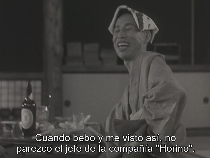 El argumento de siempre:  la vida les ha pasado por lo alto. Y no solo la vida, también se han topado con una sociedad en grave crisis económica que, además de terminar con la alegría -por ejemplo la cervecería de Tanaka tuvo que cerrar- profundiza las diferencias de clase y la desigualdad. Con toda literalidad lo muestra Ozu, y lo dice, cuando los amigos le confiesan que se ven obligados a aceptar cualquier empleo en Horino (no me pregunten qué fabrica, pero el nombre es simpático) aunque les suponga la humillación de postrarse socialmente ante el antiguo amigo.