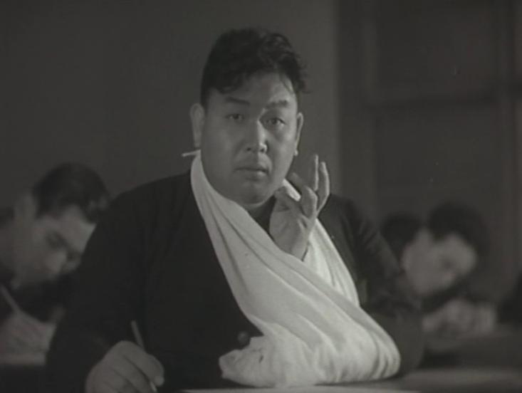 Su comienzo es prácticamente idéntico al final de He suspendido pero… Aunque los actores sean distintos y por supuesto no hay aquí la intención de construir una saga ni nada por el estilo, la sensación es que lo que sucede en esta historia es una de las continuaciones posibles de aquella. Allí teníamos a un grupo de estudiantes tarambanas, incapaces de graduarse, que se consuelan con animar a los demás con sus espantosas coreografías, y aquí tenemos a un grupo de estudiantes incapaces de graduarse que hacen una espantosa coreografía para los demás. Uno de ellos, Tetsuo (Ureo Egawa) prefiere sin embargo aplicarse en sus lecciones de economía, aunque es muy torpe y probablemente suspenda lo mismo que sus compañeros de juerga. Todos ellos desperdician cada minuto libre jugando al shogui, y por supuesto en los exámenes urden todo tipo de tretas para copiar. Sin embargo, Tetsuo no tendrá que terminar su prueba final sobre las teorías de Adam Smith y David Ricardo… Porque su padre está a punto de morir, y ahí terminan sus estudios. Su padre, que ha sufrido un derrame cerebral fatal, era un borracho tarambana al que su hermano tenía colocado como director de la empresa familiar, Horino. El padre finado ayudaba a su hijo a sortear las propuestas matrimoniales del acaudalado tío haciéndolo pasar por borracho, ladrón y maltratador -la escena que narra esto es bien graciosa-  pero, ahora que ha muerto, Tetsuo debe abandonar los estudios para hacerse cargo del puesto de su padre en la empresa: director. Con la vida estudiantil deja atrás a Oshige (Kinuyo Tanaka), dulce camarera que le pone ojitos en una cervecería donde pasan el tiempo perdido.