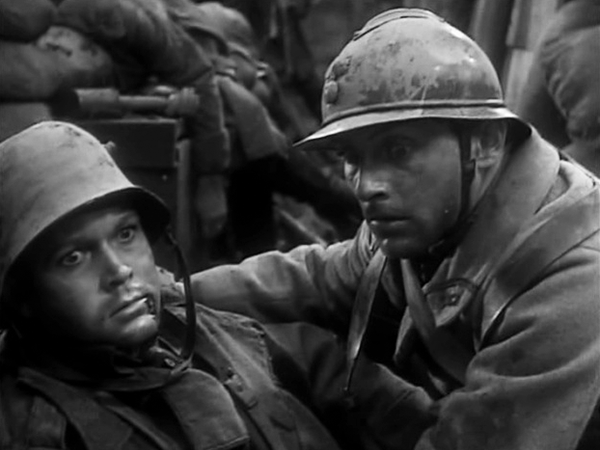 Pero, por encima de todo, destacaría una secuencia (reconozco que a mí me emocionó hasta la congoja). La secuencia de la reunión en la taberna del pueblo, interrumpida por el dr. Hörderlin (memorable Lionel Barrymore), en la cual el odio de los asistentes hacia Paul en particular y los franceses en general, motivado por el hecho de haber perdido casi todos ellos hijos en la guerra, da pie a una amarga digresión del médico sobre la responsabilidad de los mayores a la hora de enviar a los jóvenes al frente a luchar en su lugar: un veterano de guerra allí presente no puede resistir el impulso de estrechar la mano del doctor, mientras este concluye amargamente: “Cuando mi hijo marchó desfilando hacía la muerte, yo también aplaudí…”; secuencia que concluye con un nuevo apunte de poesía: la mirada del dr. Hörderlin hacia la calle del pueblo vacía, mientras en su memoria resuena en off el ruido de las botas de los muchachos desfilando hacia el matadero.
