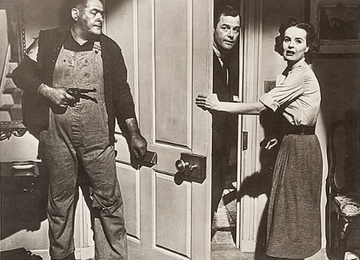 Horas desesperadas la dirigió William Wyler, del que nada malo ni feo puede decirse, salvo que en contadas ocasiones nada puede decirse de su trabajo tras la cámara, ni siquiera que sea malo ni feo. Cuenta la historia de cómo la paz de la perfecta familia próspera americana, con su casoplón, sus dos coches, el hijo listo, la hija guapa y el futuro yerno abogado, se ve rota por la intromisión del figado Glen Greffen, su hermano Hal (Dewey Martin) y un godinflón infraser llamado Sam (Robert Middleton) que invaden su casa hasta que venga la novia de Bogart con dinero fresco, subtrama no consumada por cierto, igual que en El bosque petrificado, donde también la ex se sale por la tangente. Horas desesperadas, que Wyler mismo produce, fue también un intento de rentabilizar en pantalla un enorme éxito que en Broadway estaba teniendo la obra protagonizada por un joven Paul Newman en el papel que aquí ostenta Bogart. A la evidente diferencia de edad y presencia entre el entonces bisoño Newman y el ya achacoso Bogart se puede achacar uno de los principales defectos de esta película por lo demás absorbente y bien parida: y es que el personaje de Bogie no está bien terminado, es extraño. No se comprende muy bien por qué odia tanto al padre de familia que interpreta Fredric March (otro que me encanta pero al que le sobran 10 años aquí) y sus reacciones, las de Bogart, no son coherentes, y están muy por debajo de los matices emocionales que el actor es capaz de dar y que, quizá, estropean involuntariamente a un personaje que probablemente Newman, para quien se escribió el papel, interpretara a la tremenda, con la pasión ciega de la juventud y el método Stanislavski.