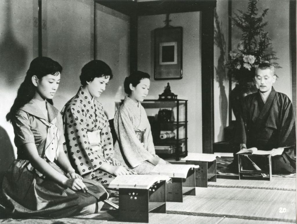Esta joyita no es una obra maestra porque le faltan esos detalles casi imperceptibles que solo están al alcance de las obras intemporales y que Ozu, aunque se repitiera mucho, tenía perfectamente controlados. Solo mencionaré uno, porque no quiero menoscabar un ápice el trabajo de Tanaka, que es notable, pero por ejemplo la escena epílogo en la que la hija mayor y Chishu Ruy (sí, aquí está) que es el padre, recitan ya en soledad, queda un poco postiza, no se llega a ella con la ligereza con que ocurre en Primavera Tardía, El sabor del Sake y muchas otras, en las que de pronto pasamos en unos segundos de una barra de bar al hundimiento de todos los astros sobre el sacrificado patriarca que se queda solo con una manzana -guiño por cierto de Tanaka a la famosa escena de Primavera tardía– o con la luna que ya empieza a bajar y se retira a sus aposentos siderales, una vez cumplido su objetivo de que se enamoren los que no se sabían amantes.