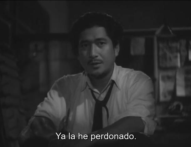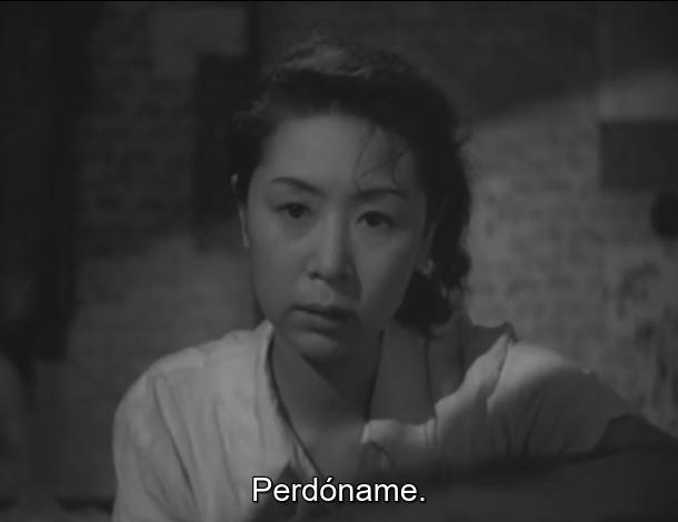 En plena posguerra, en un suburbio tokiota aún en ruinas, Tokiko (Kinuyo Tanaka) sobrevive a duras penas y alimenta a su hijo vendiendo sus kimonos, esos pequeños tesoros de las mujeres humildes. Su marido Shuichi (Shuji Sano) aún no ha vuelto de la guerra que acabó hace ya tres años, así que, cuando el niño enferma y hay que ingresarlo justo después de que venda su última prenda y no le queden ya ahorros, se ve obligada a prostituirse, solo una vez, para pagar la cuenta del hospital. Al poco de recuperarse el niño vuelve el marido quizá de un campo de prisioneros -no se nos dice, ni de dónde viene, la censura lo prohíbe- para descubrir enseguida lo que ha tenido que hacer su mujer y no la perdona; la golpea e incluso la viola. Después acudirá a la casa de citas para investigar lo ocurrido, y empezará a cambiar su actitud al hablar con otra joven que se ve obligada a prostituirse y con un amigo suyo; curioso, lo interpreta Chisu Ryu, que hizo de su padre siete años antes y ahora parece casi más joven que él, quizá porque no tuvo que sufrir los rigores de la guerra, como sí lo hizo Shuji Sano en la vida real. No desvelo la resolución de la historia.