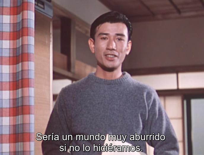Es decir, que en este caso Ozu tenía en mente algo más serio y dramático, relacionado con las convenciones sociales que critican los niños -luego comentaremos esto- y al final se dejó llevar por el cansancio de los años y la transformó en un amable entretenimiento comercial.