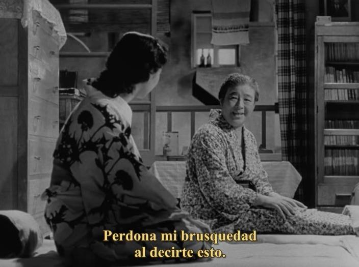 Esas 60 imágenes, que he tomado de las mismas capturas que he ido haciendo a lo largo del año, no te puedes imaginar lo fácil que me ha resultado unirlas siguiendo un cierto hilo temático y emocional. Podría haber compuesto otras 60 combinaciones igual de evocadoras, porque el cine de Ozu a pesar de que se repite como el ajo está lleno de sustancia como la cebolla, y en 10 minutos de cualquiera de sus películas es fácil encontrar 5 frases convenientes y 5 imágenes memorables, cuando menos. Eso sí, todos los besos de su cine no dan ni para la décima parte del final de Cinema Paradiso. Esto es algo que aún no sé si se le debe recriminar al puritano Ozu, o si simplemente debo mirar para otro lado.