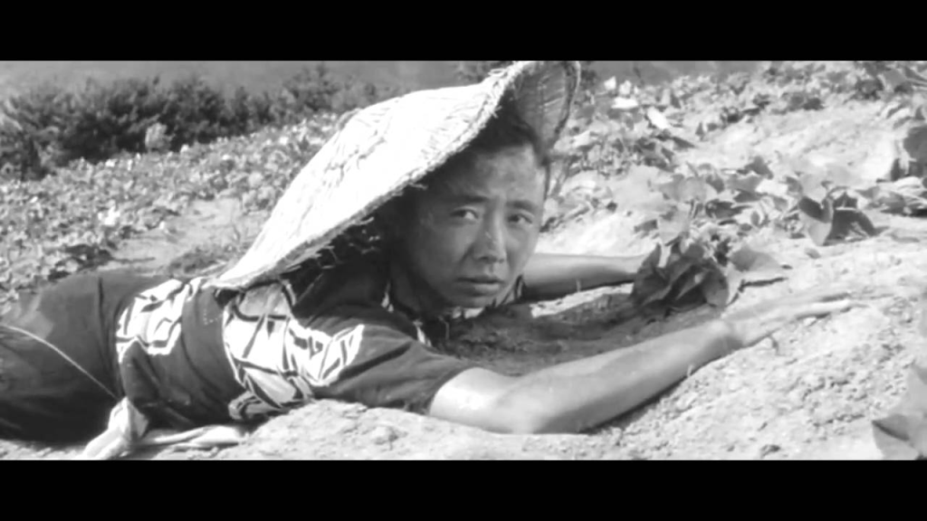 La relación que los japoneses tienen, o tenían, con la naturaleza, quizá sea lo que más aleja su mentalidad de la nuestra, mucho más que los kimonos, el kabuki y el zen de todo a cien. No sé si el ancestral animismo sintoísta que está en la base de su cultura es causa, o consecuencia, de la manera tan especial en la que este pueblo tan machacado por sus condiciones geográficas, climáticas y tectónicas siente una conexión tan profunda, genética, con la tierra infértil, el agua lejana, las montañas inexpugnables y esas islas inhóspitas a las que imploran su fruto sin exigírselo. Un par de momentos memorables de la película apuntalan esto que digo: uno, cuando tras arrancar una raíz la mujer da con una tierra que conserva algo de humedad, y se emociona. Otro, cuando tras una desgracia se rebela ante la triste vida que lleva vertiendo el agua y arrancando algunas plantas para, enseguida, volver a la rutina de acarreo y digna miseria.