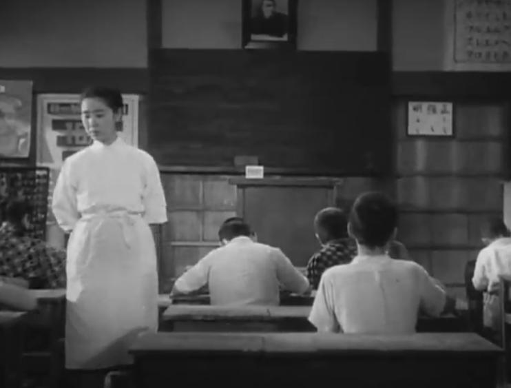Por ejemplo, tengo la impresión de que esta película se ha rodado sin guion literal -práctica habitual de Shimizu, o bien tenía libreto pero lo ignoraba- y que lo que ha hecho es determinar junto a Yoshirô Tsuji, el guionista, varias tramas a desarrollar que se van alternando en una sucesión de escenas paralelas en las que simplemente se plantea la cuestión, en otras dos o tres nos familiarizamos con los personajes, en otra la cosa se pone peligrosa o sucede algo inesperado y en la última se resuelve, todo esto abierto con el prólogo casi documental del que hablaba antes y cerrado con una conclusión/charla sobre salud preventiva con sorpresa que cierra el film. Los diálogos en buena parte se nota que son improvisados por las reiteraciones en las que a veces incurren los personajes, o el peculiar tempo en el que en ocasiones se suceden las frases de unos con otros, como si tuvieran que pensar qué responderse. Otro signo de apresuramiento lo veo en las escenas rodadas en el aula de la escuela. Da la sensación de que en ese decorado o aula real solo tenían una mañana para rodarlo todo, así que se percibe claramente que los planos son fijos, pero la cámara o está sujeta a pulso, o sobre un trípode mal asentado, y las conversaciones son rápidas y a otra cosa mariposa.
